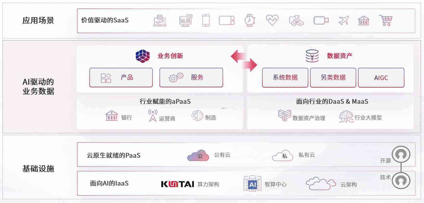 数字时代,,,,围绕企业数字化转型的关键要素,,,PAYPAY数码开创性的提出数云融合战略和技术体系框架,,,,着力在云原生、、、数字原生、、、AI原生和信创产业上架构产品和服务能力,,,,为处在不同数字化转型阶段的快消零售、、、、汽车、、金融、、、、医疗、、政企、、教育、、、、运营商等行业客户提供泛在的敏捷IT能力和融合的数据驱动能力,,,构建跨界融合创新的数字业务场景和新业务模式,,,助力企业级客户建立面向未来的核心能力和竞争优势,,,,全面推动社会的数字化、、智能化转型升级。。。
